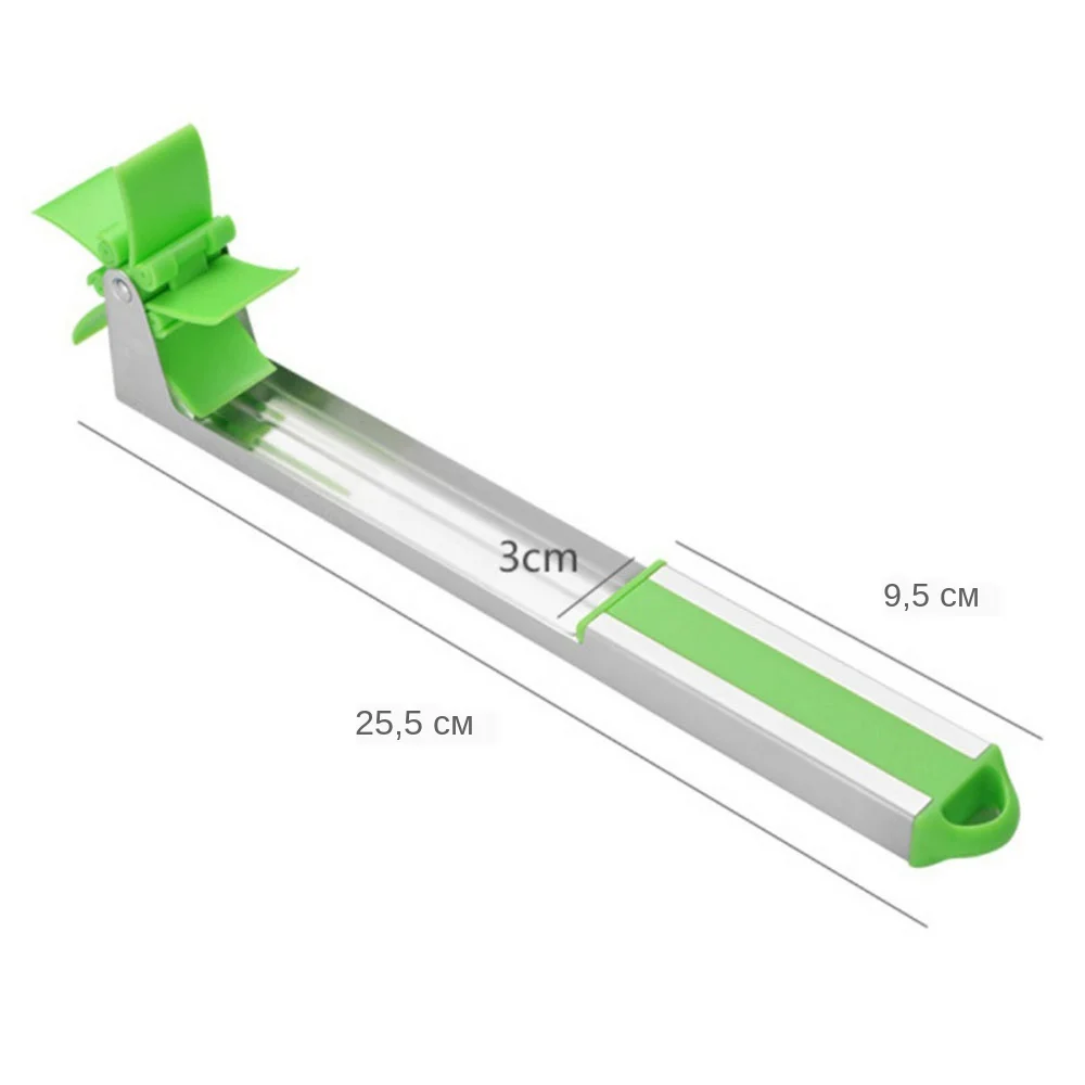 Спецификация Материал: пищевая нержавеющая сталь 304 + ПП Цвет: зеленый Размер изделия: 25,5*9,5*3 см Вес нетто: 106 г Использование: Извлеките мякоть арбуза, канталупа и других фруктов Особенности 1. Желоб арбуза из нержавеющей стали с гладкой внутренней стенкой и без застревания 2. Может контролировать толщину Арбузного блока 3. Удобное сцепление, экономия усилий В комплект входит 1X мельница для резки арбуза артефакт
