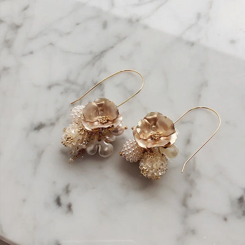 Корейские серьги с жемчугом, роскошные геометрические металлические золотые жемчужные шарики, длинные серьги с кисточками, модные женские серьги, 2019
