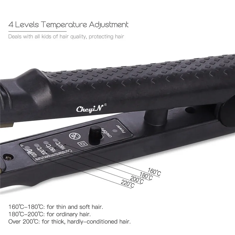 【 4 уровня контроля температуры 】 160 ℃/ 180 ℃/ 200 ℃/ 220 ℃. Вы можете регулировать разную температуру в соответствии с качеством ваших волос.