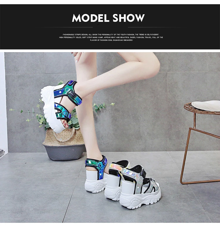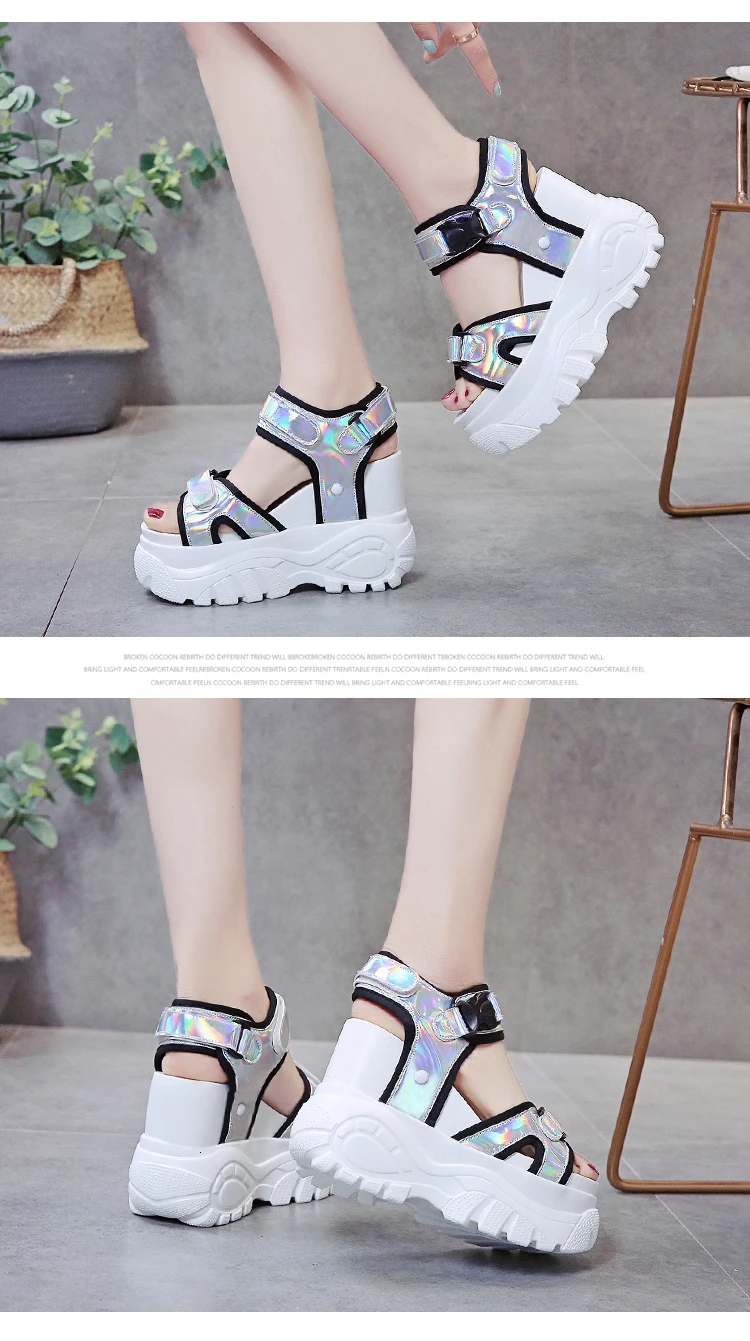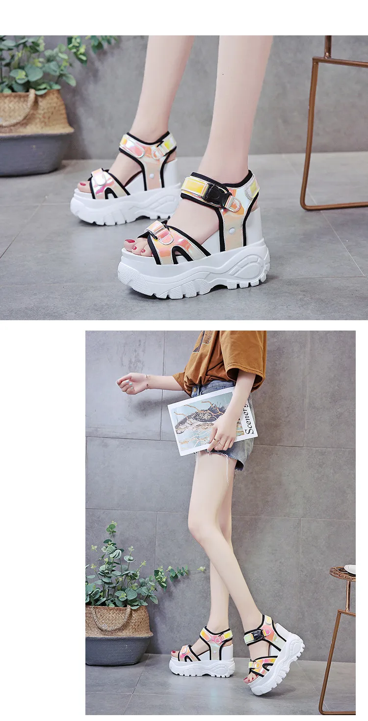 2019 летние блестящие сандалии; Кроссовки на платформе; Повседневные кожаные сандалии-гладиаторы; Обувь на каблуке высотой 11 см; Пляжные сандалии на высоком каблуке