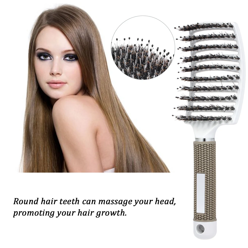 Эта Нейлоновая Щетка для волос быстро сохнет и легко моется. Нескользящая резиновая ручка удобно держать. Он может массировать вашу голову во время расчески, почему бы не принести его домой и попробовать?
