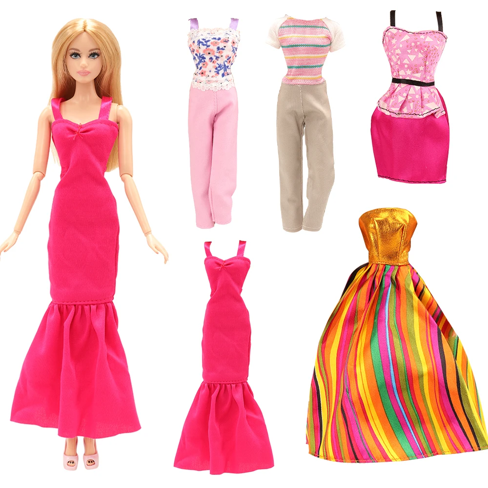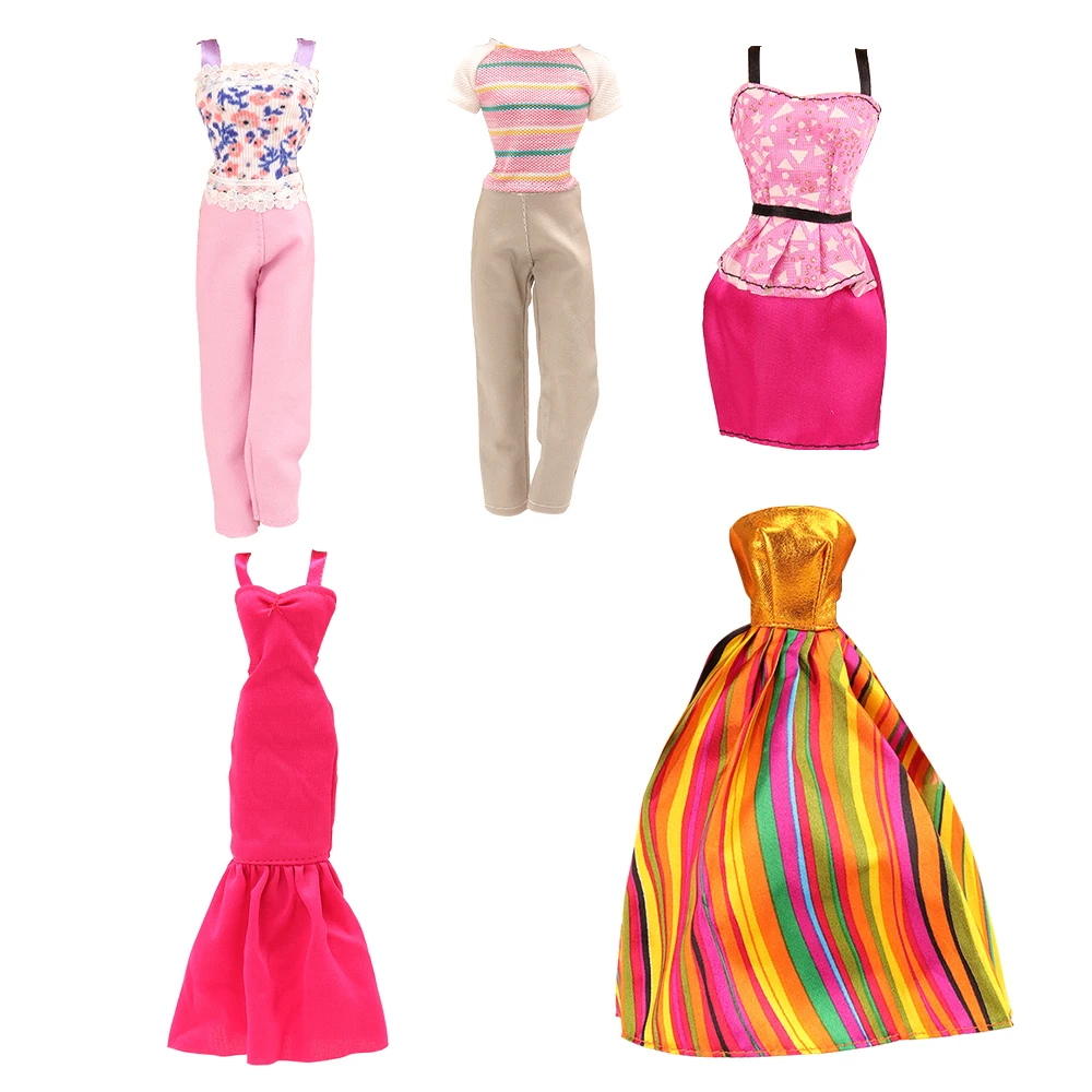 Модная красивая одежда ручной работы, 5 предметов в партии, вечерняя одежда, Кукольное платье, куклы, аксессуары для игры Барби, лучший подарок на день рождения
