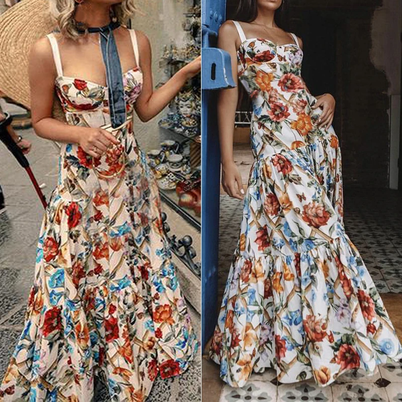 * Описание товара: пляж; секси; без рукавов; слинг; Ретро; цветочный; вечеринка; коктейльное; Макси-платье