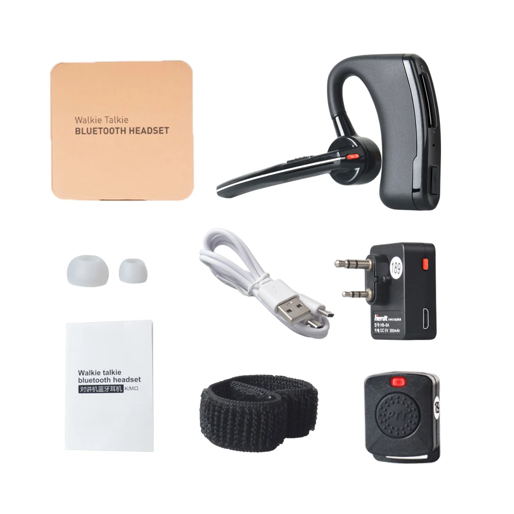 1 * bluetooth-гарнитура 1 * адаптер 1 * Беспроводная кнопка PTT 1 * кабель зарядного устройства два в одном 1 * эластичная лента 1 * силиконовая крышка для ушей 1 * Руководство пользователя.