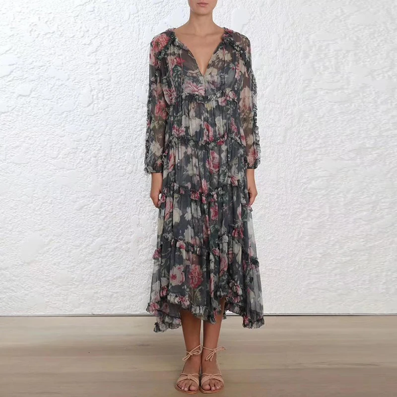 Весна 2020 новая женская одежда платье миди без рукавов с принтом лотоса открытой