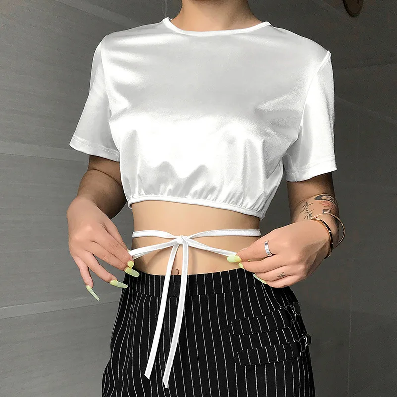 Женская белая однотонная Повседневная футболка, короткая футболка с круглым вырезом, женская летняя модная одежда, лидер продаж, Повседневная футболка