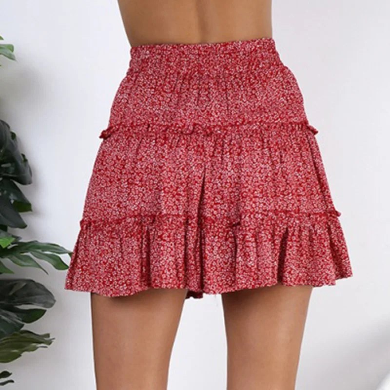 * Описание товара: высокая талия; цветочный; горошек; а-силуэт; гофрированные; пляжные; Летние; короткие; мини-юбка
