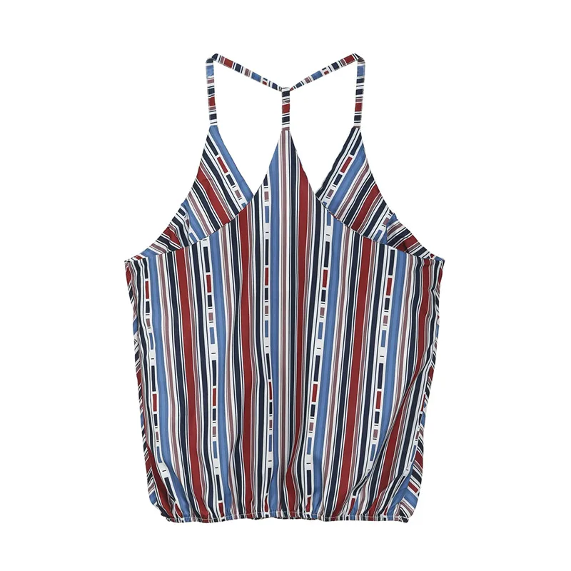 Женская летняя одежда, майка без рукавов, Повседневная Свободная Полосатая майка, топы с v-образным вырезом, обычный размер, пуловер из полиэстера, горячая распродажа