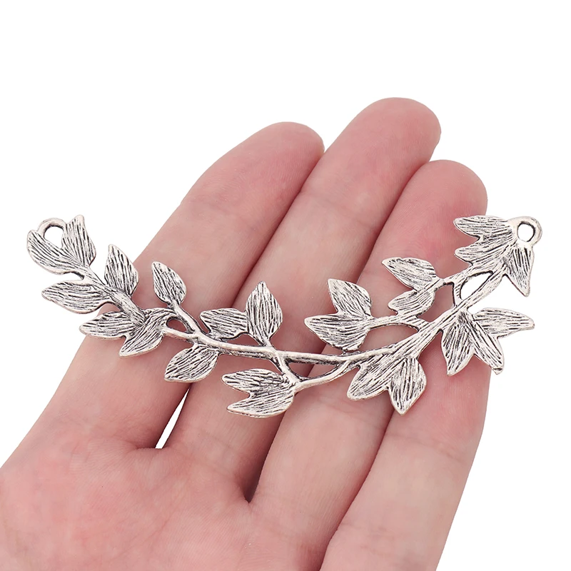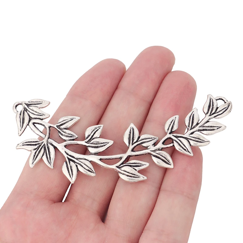 3 x тибетские серебряные большие шармы-соединители в виде листьев, подвески для ожерелья, ювелирные изделия, фурнитура 87x25мм