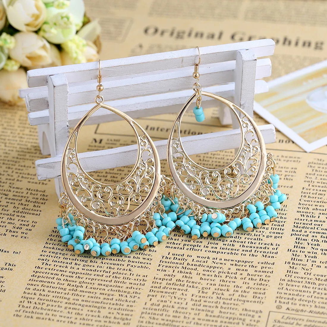 Серьги Размер: 7 см * 4,5 см Цвет металла: посеребренный Материал: бисер, сплав Включает: 1 пара