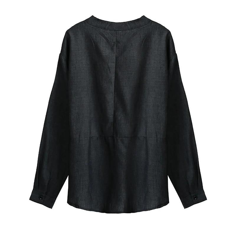 Эта джинсовая рубашка, однотонная, однобортная спереди, с длинным рукавом и высоким низом, является повседневной, свободной и шикарной для повседневного ношения.