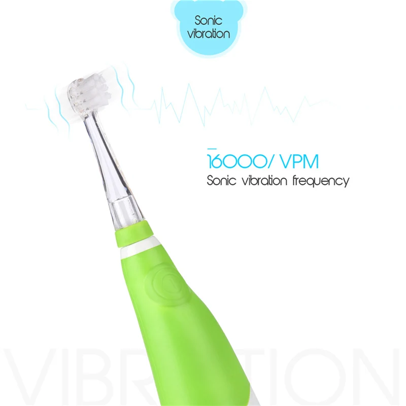 Звуковая вибрация, Детская электрическая зубная щетка, Детская Мягкая зубная щетка на батарейках, водонепроницаемая отбеливающая щетка для зубов со светодиодной подсветкой 31