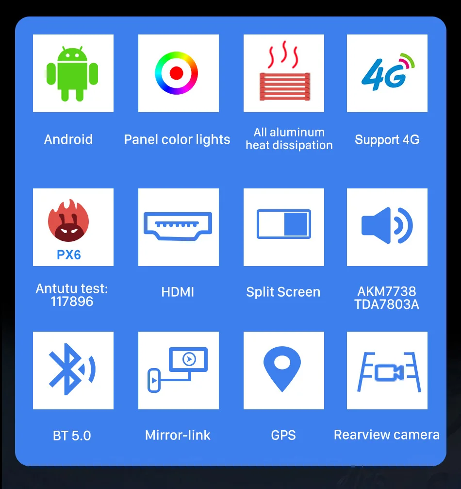Версия 4G + 64G, ANTUTU может достигать 117896, это очень большое количество для автомобильного мультимедийного плеера.