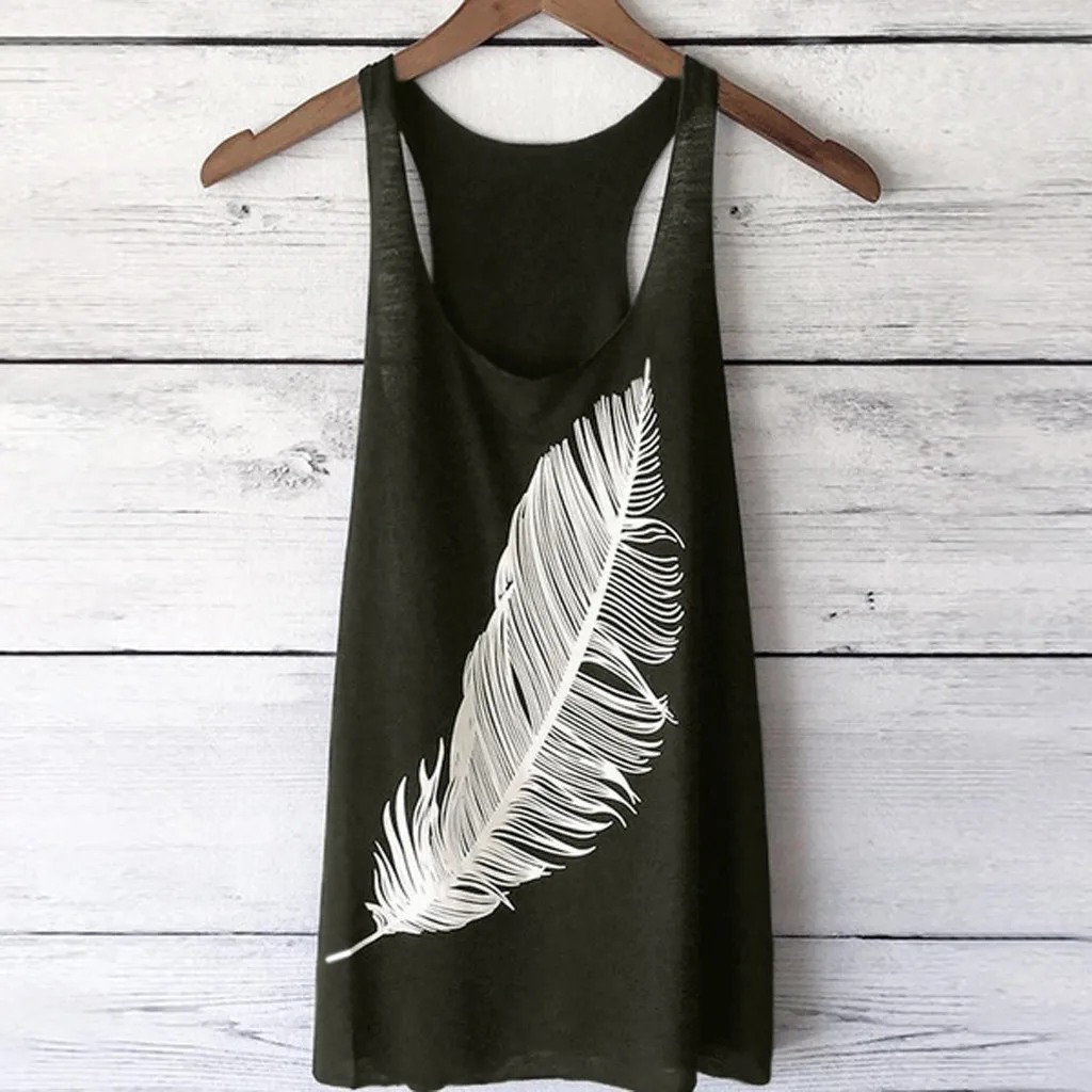 Женский летний длинный жилет с принтом из перьев, Модный женский топ