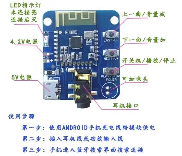 JDY-64.Функции по умолчанию для наушников, по умолчанию поддерживает три кнопки, кнопки1Поддержка переключателя, воспроизведения музыки или остановки, ответа на телефонные звонки и кнопки2Поддерживает следующую песню, уменьшение громкости, кнопки3Поддержка песни, громкости и других функций, по умолчанию без подсказки (запуск, выключение и кнопки, подключение и отключение), функция гарнитуры по умолчанию не поддерживаетсяSDКарта, по умолчанию для загрузки wake up не спят, радио называется по умолчаниюJDY-64.Выше, это стандартные параметры и функции, если есть какие-либо особые требования, могут быть настроены в соответствии с функциональными требованиями клиентов.