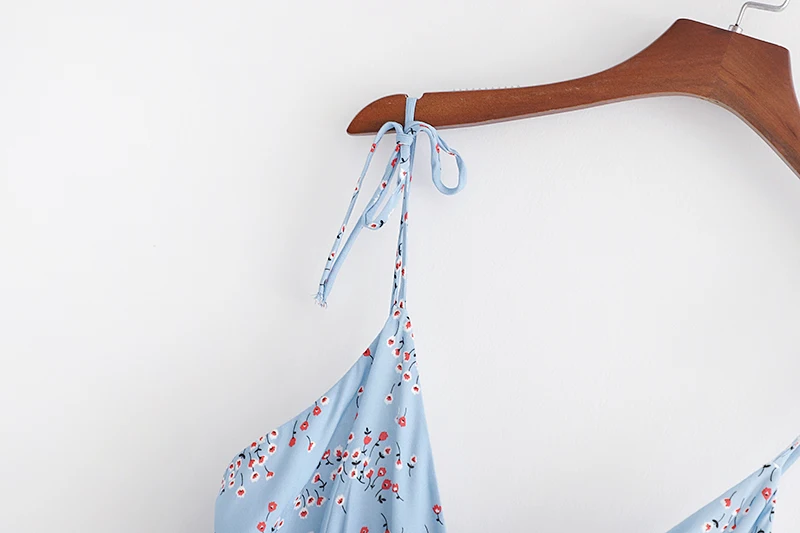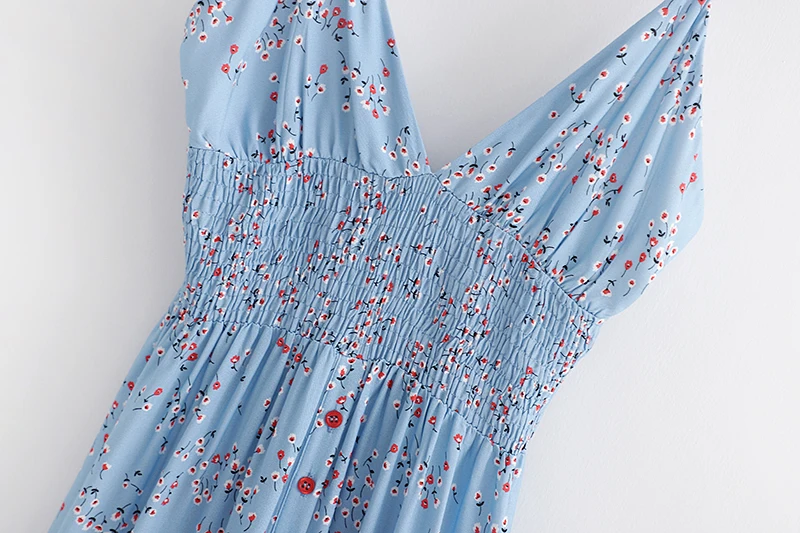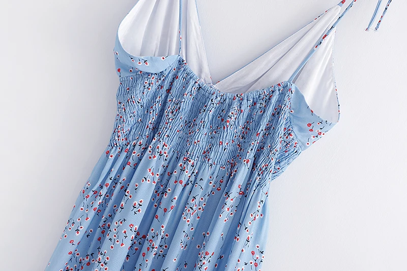 Женское платье на бретельках SheMujerSky, синее пляжное платье миди с цветочным принтом и эластичной резинкой на талии, летний сарафан 2019