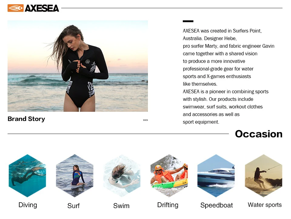 AXESEA женский купальный костюм с длинным рукавом, Цельный купальник для серфинга, защита от солнца, с молнией спереди, однотонный лоскутный Рашгард