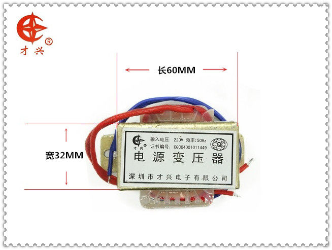 Название продукта: силовой трансформатор Бренд: талант Модель железного сердечника: EI57 * 30 Номинальная мощность: 20 Вт Входное напряжение: 380 В переменного тока/50 Гц Выходное напряжение: 36 В переменного тока (один выход) Частотные характеристики: низкая частота Форма сердечника: Тип EI Влагостойкие: открытая Метод охлаждения: Естественное охлаждение Форма охлаждения: надувная лодка Форма конструкции: однофазный трансформатор Вес нетто: 0,62 кг Линейные: две красные линии являются входными линиями, Две Синие линии-выходными линиями, а желтые или черные линии-центральный кран. Размеры: 60 мм * 32 мм * 50 мм (железный сердечник: длина * ширина * высота) Ширина катушки: 53 мм шаг: 87 мм шаг: 73 мм