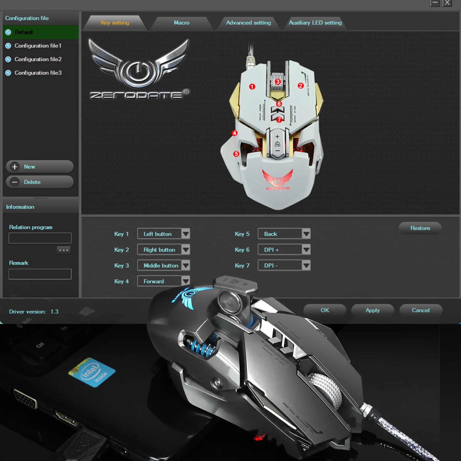 Так, как быстро включить/выключить дыхательный светильник: Сначала нажмите боковую кнопку (вперед или назад), а затем нажмите кнопку DPI. Одновременно нажмите и кнопку DPI, и боковую кнопку (advance button или reach button). Загрузка и использование пользовательского драйвера: 1. Вставьте диск драйвера в компьютер и запустите установщик "setup.exe". 2. Установка может быть начата, когда мышь успешно подключена и при нормальном использовании. 3. Когда установка завершена, на рабочем столе появится значок диска "X300". 4. Основные настройки, дополнительные настройки, светодиодный режим дыхания. 5. В основных настройках Пользовательские настройки поддерживаются в раскрывающемся списке каждой кнопки. 6. В расширенные настройки, макро-Редактирование поддерживается, и макро-каталог может быть добавлен или deleted. 7. В режиме дыхания светодиодный светильник, длинный светильник, светильник выключен и изменен DPI определенный светильник поддерживаются. 8. Когда настройки будут выполнены, нажмите приложение и нажмите сохранить конфигурацию. Вы должны снова загрузить драйвер при следующем использовании, чтобы можно было использовать все самостоятельные функции