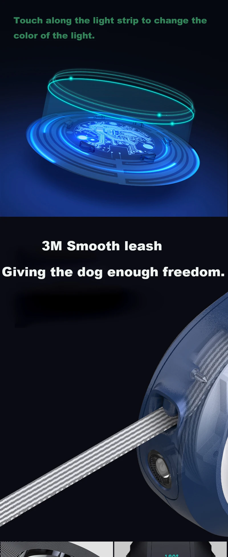 1. Ультра удобная ручка: -Наружная ручка изготовлена из твердого поликарбоната, а внутренняя часть-из мягкого полиэтилена TPE, который приносит Супер Ощущение руки даже в течение длительного времени 2. Двойная система освещения для ночной ходьбы: -Оснащен светодиодный, даже темная Ночная ходьба полна веселья. Обеспечьте большую безопасность в ночное время, энергосбережение 3. Прочная застежка для безопасности собак: -Использование усиленного металла для создания системы пряжки, которая не только обеспечит безопасность ваших собак, но и позволит вам изменить поводок одним простым нажатием