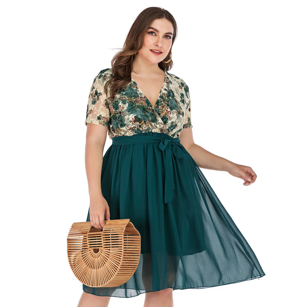 Женское кружевное шифоновое платье Wipalo, летнее платье с цветочным принтом, глубоким вырезом и коротким рукавом, есть большие размеры 5XL