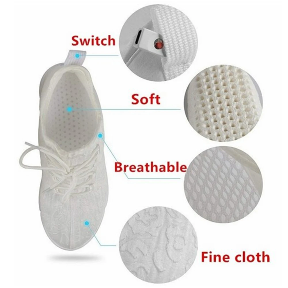 -- Инновационный дизайн: этот волоконно-оптический светодиодный башмак имеет скрытый переключатель на двойной линии верхней части, вы можете найти правильное зарядное устройство для зарядки обуви.