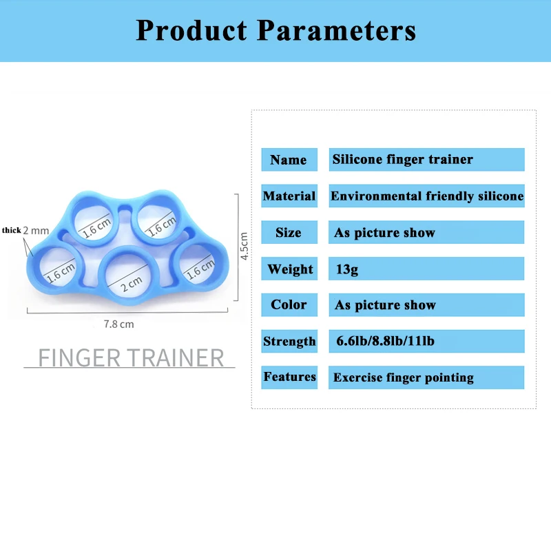 Спецификация: Цвет: зеленый/светло-синий/голубой/синий/темно-синий/серый/темно-серый/оранжевый/черный (опционально) Материал: силикагель Функция: палец растягиватель Голубое озеро Ралли: 4 кг/8,8 фунта Фруктово-зеленое натяжение: 3 кг/6,6 фунта Оранжевая тяга: 5 кг/11 фунтов Размер продукта: 8*4*2 см Особенности: Тренажер для пальцев был специально разработан для тренировки мышц и укрепления ее расширения, балансируя все, что проходило захватывающе. Компактность и эффективность, помогает исправить дисбаланс, вызванный избытком, усилит расширение мышц-захватывает. Упаковочный лист: 1 x палец растягиватель
