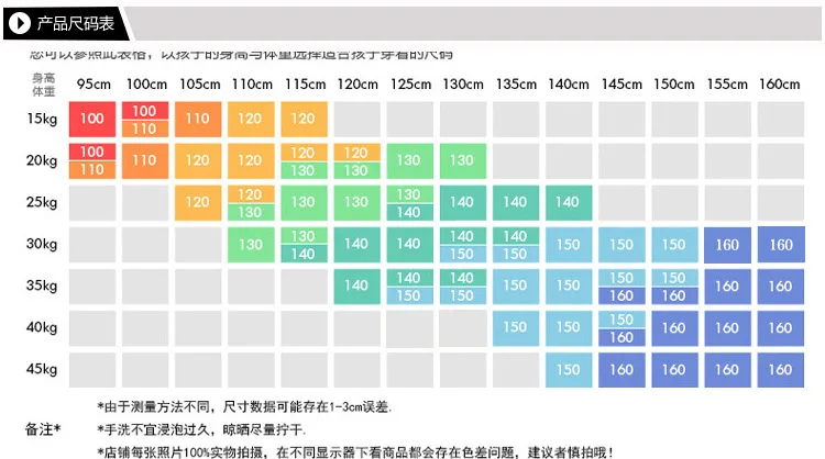 Пожалуйста, измерьте рост вашего ребенка и сравните его с таблицей размеров, чтобы выбрать размер. Если он полный, пожалуйста, выберите на 1 или 2 размера больше.