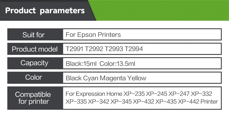 Для принтера Epson XP 235 XP247 XP245 XP332 XP335 XP342 XP345 XP435 XP432 XP442