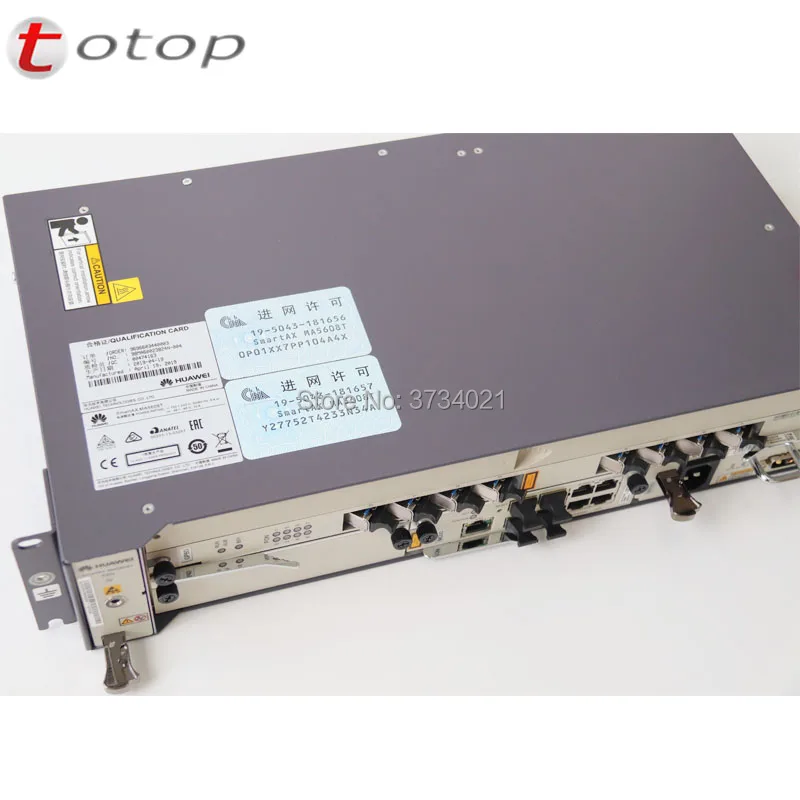 Конфигурации HUAWEI SMARTAX MA5608T: 1. 1 * MA5608T шасси, 2. 1 * плата управления MCUD1 10G, 3. 1 * MPWD AC Power Optical, 4. 1 * сервисная плата GPBD (с модулями B + C + + SFP для вашего выбора), 5. Другие аксессуары (кабель питания, заземляющий Кабель, пачкорды, ленточные ленты, винты и т. д.)