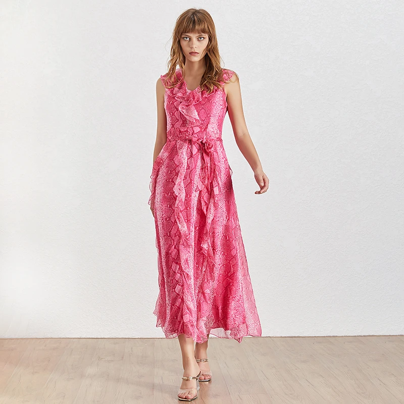 FMFSSOM Новое однотонное женское платье миди с поясом повседневное ТРАПЕЦИЕВИДНОЕ