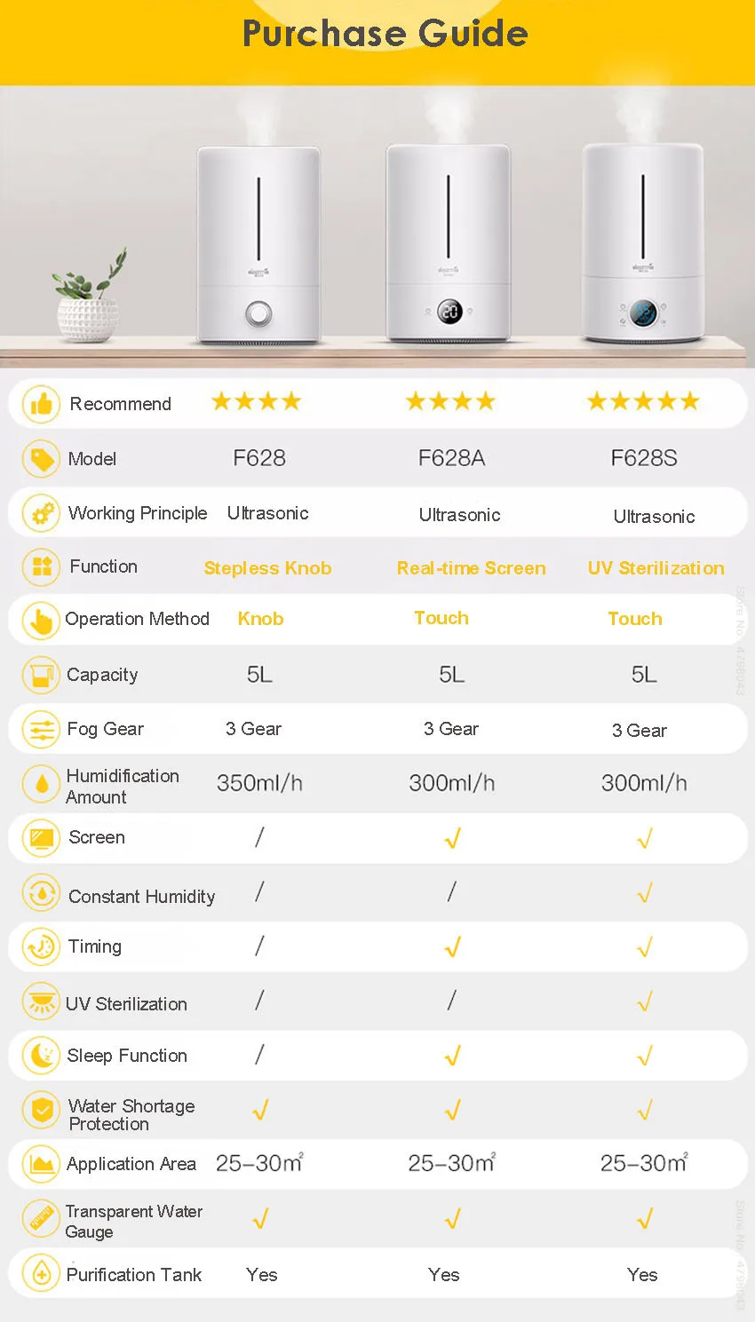 Основные Особенности: -Тихий и эффективный: ультра-Тихая технология и энергосберегающий дизайн, поэтому вы можете быть уверены, что двойное увлажнение. -Увлажнители наполняют вашу комнату или офис чистым и свежим воздухом и делают вашу работу и повседневную деятельность намного приятнее и эффективнее. -Наполнен прекрасным ароматом, который может улучшить ваше настроение. -Уникальный модный дизайн, увлажнение Вашей жилой площади. -Подходит для спальни, кабинета, офиса, гостиной, ванной комнаты, йоги, спа, конференц-зала, детской комнаты и так далее. -Может использоваться в качестве ароматерапевтического диффузора, увлажнителя воздуха, воздухоочистителя. Это также идеальный подарок Параметры: -Торговая марка: Deerma -Модель: DEM-F628/628A/628S -Материал: АБС-пластик -Ёмкость: 5L -Напряжение: 220 В 50 Гц -Мощность: 25 Вт -Объем тумана: 350 мл/ч -Шум: 35 дБ и меньше