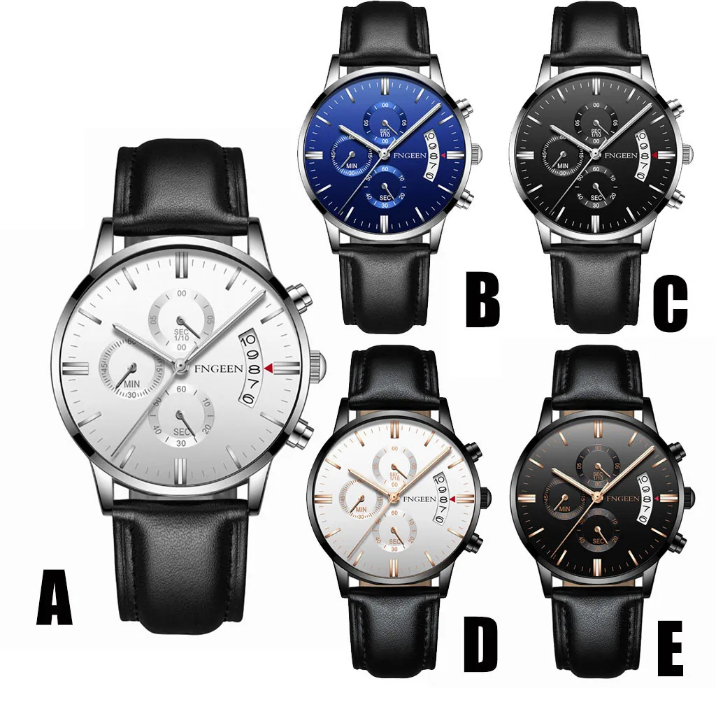 FNGEEN мужские роскошные повседневные часы Кварцевые водонепроницаемые часы с кожаным ремешком и календарем