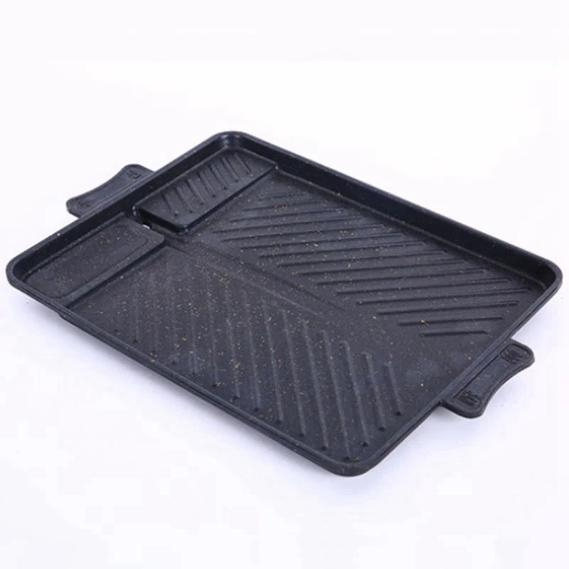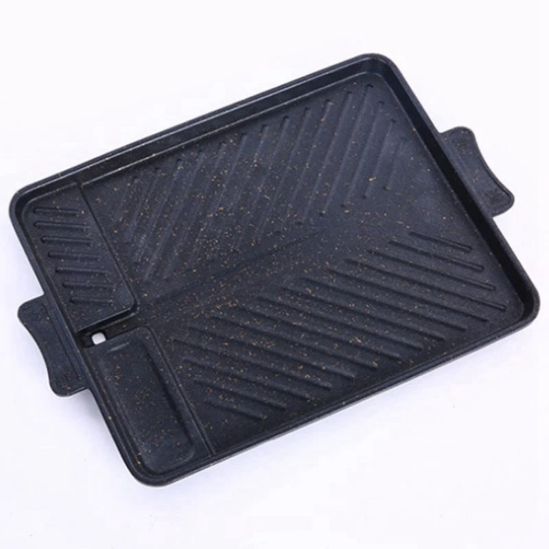 LBER корейский стиль рисовый камень алюминиевый поддон для выпечки квадратный гриль для барбекю блюдо портативная наружная сковорода для барбекю