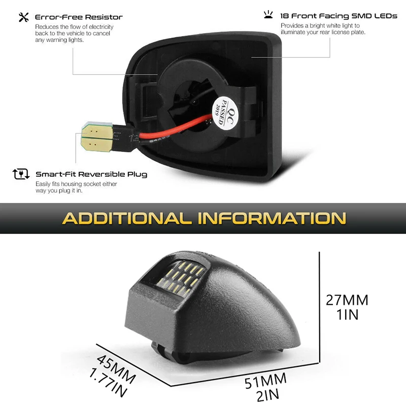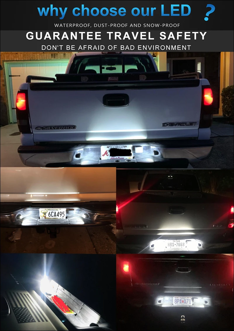 1. Яркость для Cadillac Escalade Chevy Silverado GMC Sierra Yukon светодиодный светильник для номерного знака 2. Замена на 10х ярче, чем OEM светильник, встроенный высокомощный SMD светодиодный чип для максимальной подсветки заднего конца 3. Установка: Полностью подключи и работай, просто снимите оригинальные лампы T10 и Подключите вилку. 4. Прямая замена: идентичная спецификации OEM. Никаких изменений или обрезки не требуется. 5. Одобрено SAE & DOT: 100% уличная торговля.