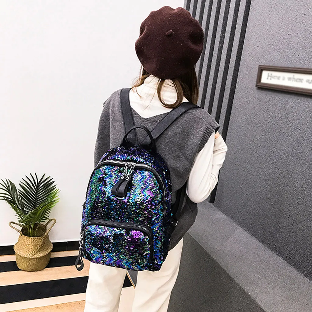 Женская школьная сумка с блестками, рюкзак для студентов, дорожная сумка через плечо