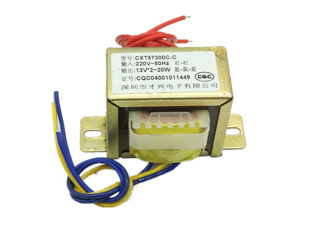 Название продукта: Мощность трансформатор Бренд: талант Модель железного сердечника: EI57 * 30 Номинальная мощность: 20 Вт Вход напряжение: AC 220V / 50Hz Выход напряжение: переменный ток 13В (двойной Выход) Частотные характеристики: низкая частота Ядро формы: EI типа Влагостойкие: открытая Способ охлаждения: Естественное охлаждение Форма охлаждения: надувная лодка Структура Форма: однофазный трансформатор Вес нетто: 0,62 кг Линейный: два красных линий линии входного сигнала, в виде двух синих линий выходные линии и желтом цветах линий или черный линии центральный кран линии. Размеры: 60 мм * 32 мм * 50 мм (железное ядро: длина * ширина * высота) Ширина: 53 мм шаг: 87 мм шаг: 73 мм