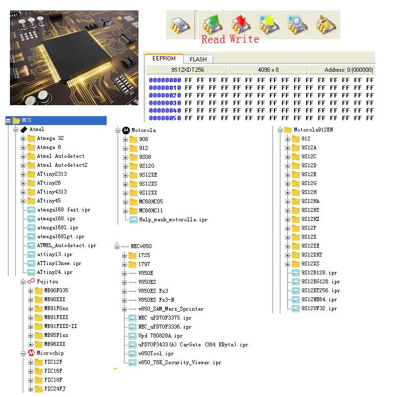 Чтения и записи чипов Крышки чипов Atmel, Fujitsu и microchips Motorola, NEC v850