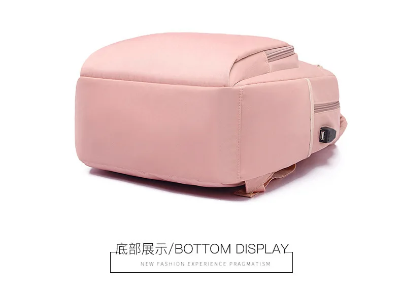 Женский рюкзак с двумя плечами, рюкзак для компьютера, USB зарядка, розовый, женский водонепроницаемый рюкзак, школьные сумки для девочек-подростков