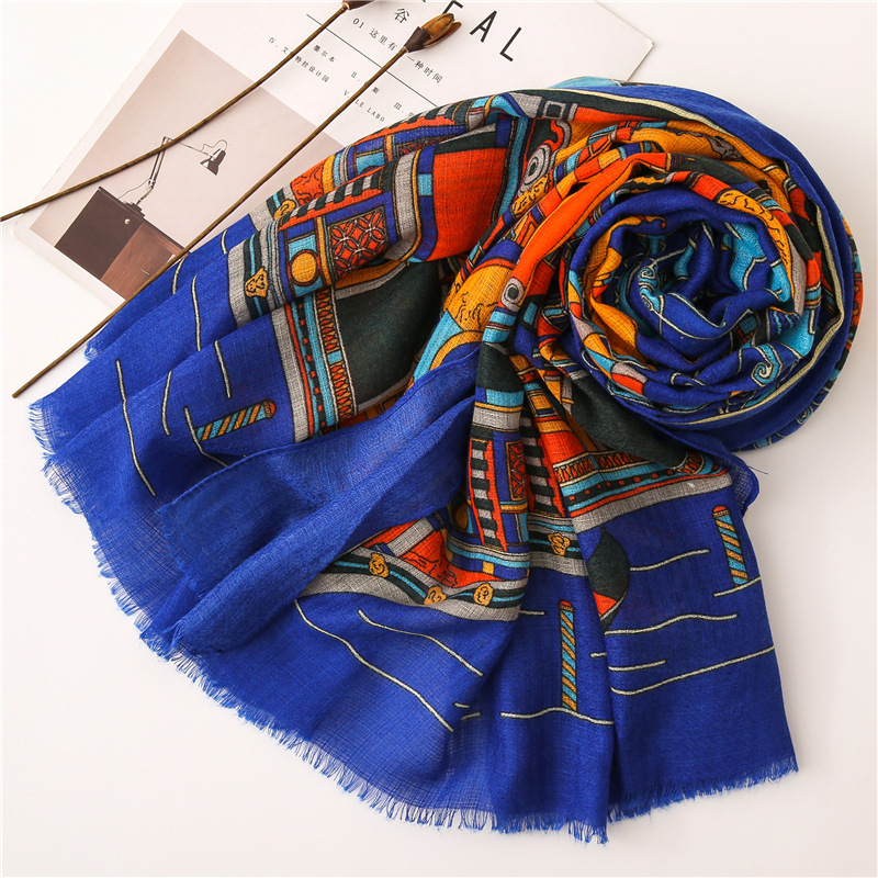 Женский Длинный шарф-шаль из вискозы в Африканском этническом стиле Sjaal, темно-синий теплый зимний шарф большого размера, 2019