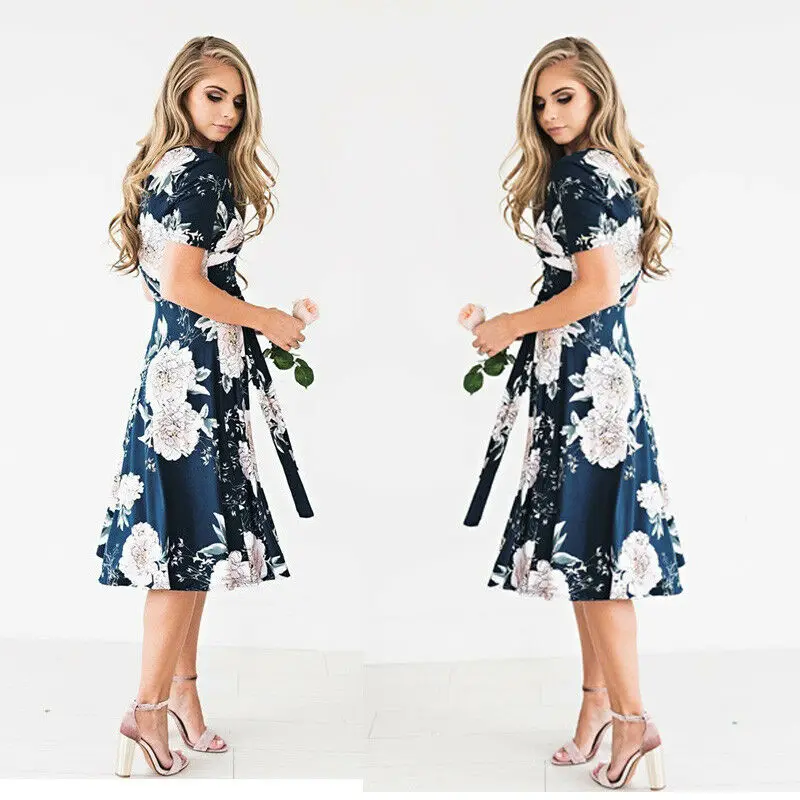 1 x Women's dress Color: Deep blue/ Light blue/ White Material: Milk Fiber