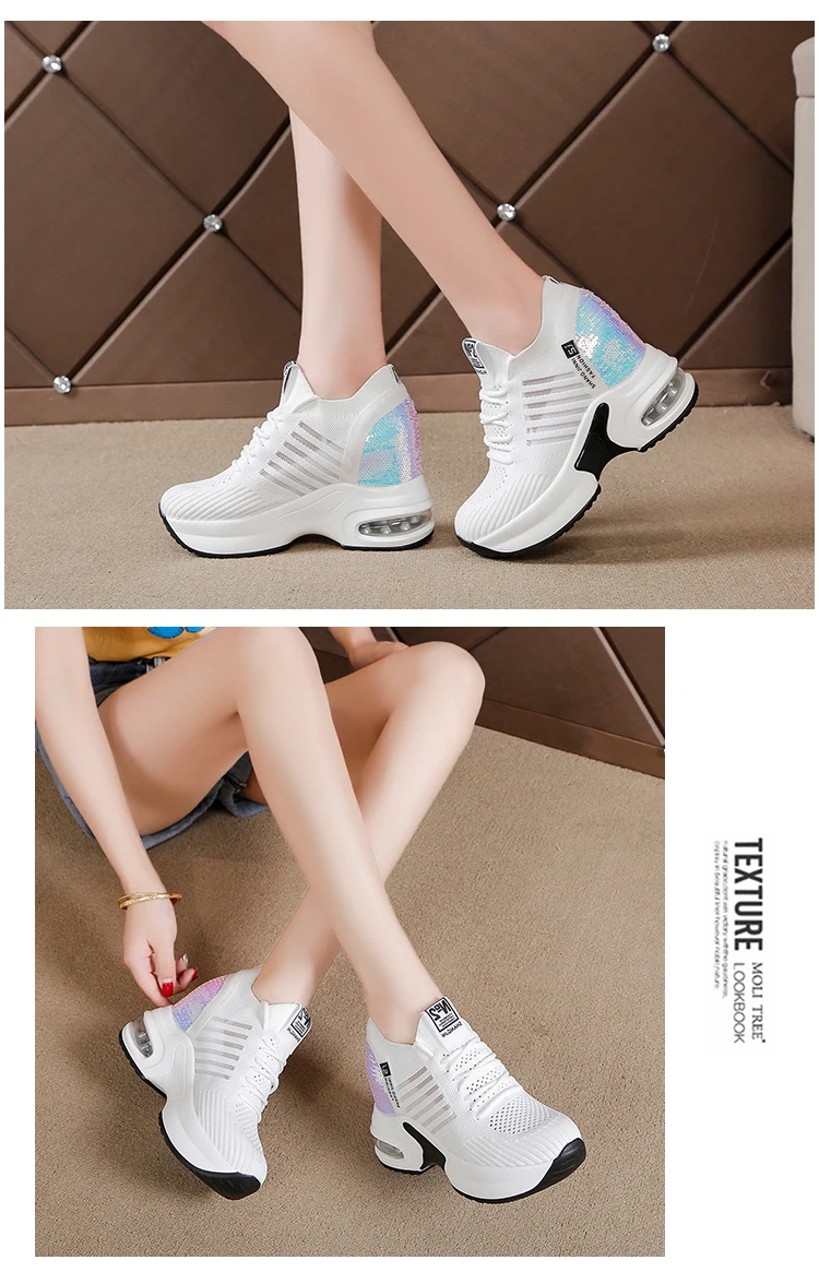 Новые 2019 женские кроссовки с верхом из сетчатого материала; Повседневные женские кроссовки на платформе; Белые туфли 8,5 см; Женские туфли на платформе в английском стиле; Дышащая женская летняя обувь в стиле шик