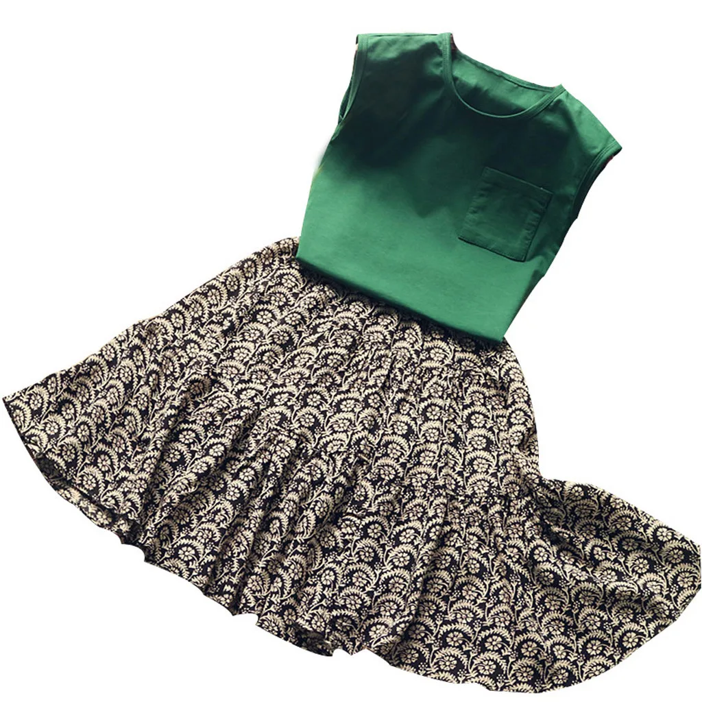 Жилет без рукавов для маленьких девочек; футболка; комплект с юбкой принцессы с цветочным рисунком