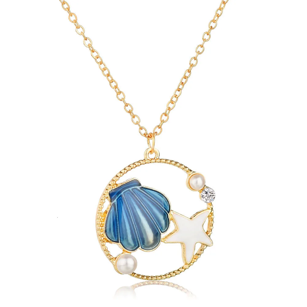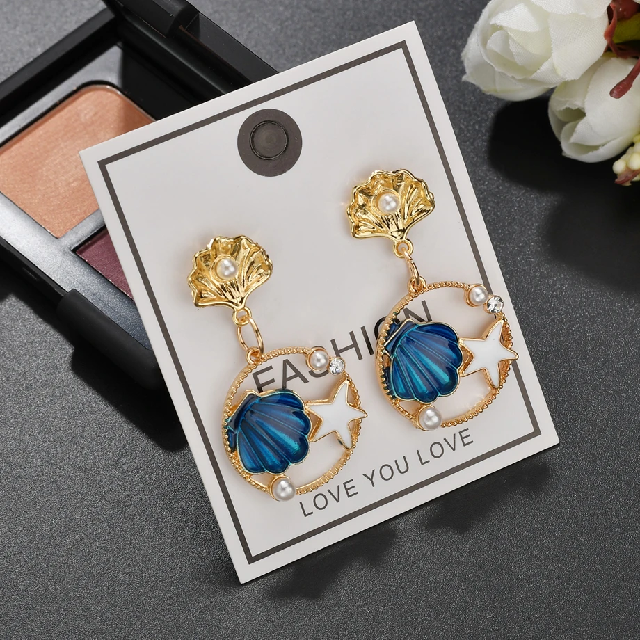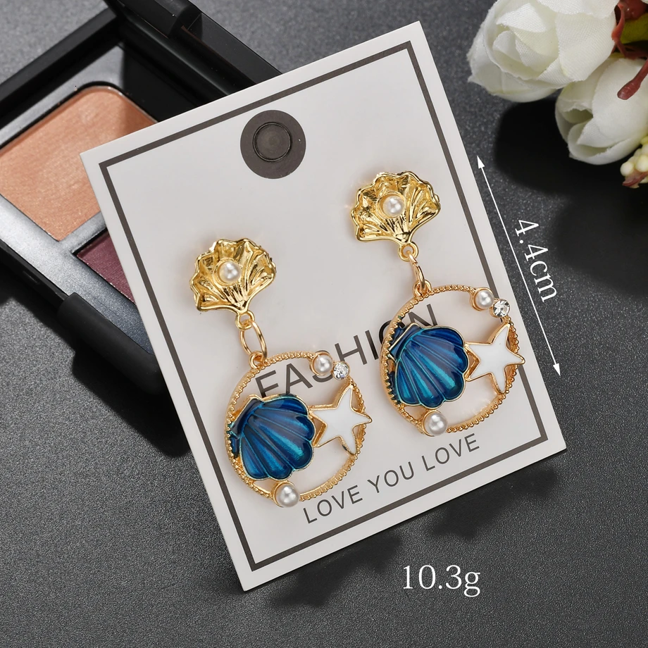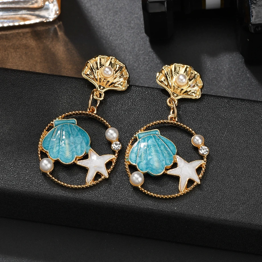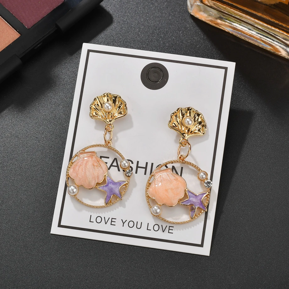Летний милый комплект с ожерельем для девочек, полые многоцветные серьги-подвески с жемчужинами и стразами в виде ракушек морской звезды, романтическое ожерелье, подарок на день рождения
