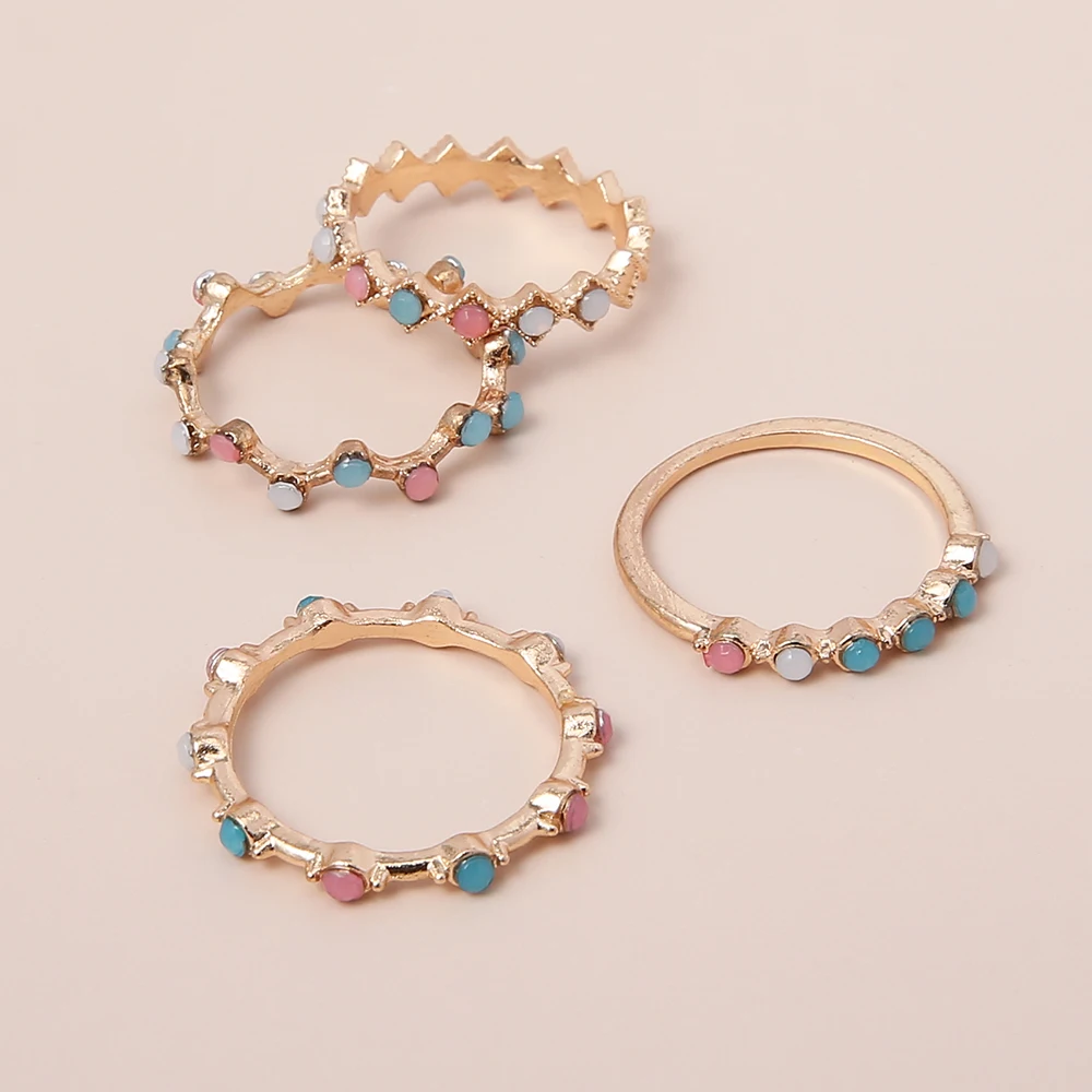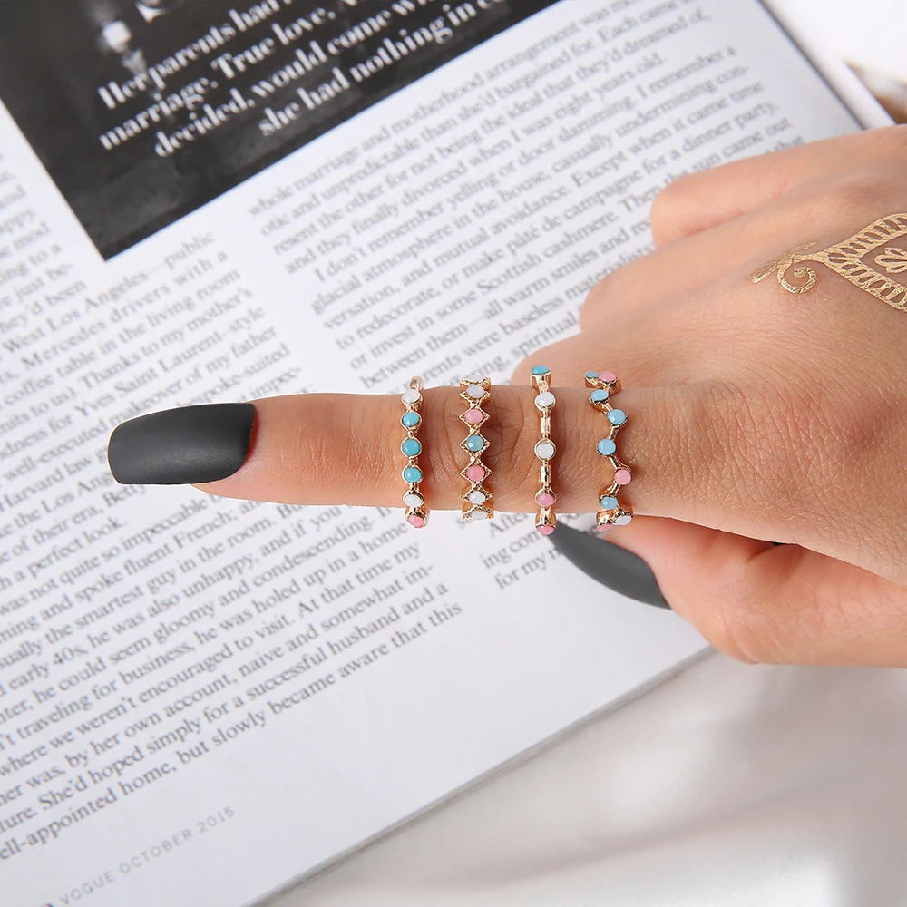 4 шт./компл./набор, винтажные цветные кольца на палец с кристаллами, набор женских колец Midi Kunckle, новые модные украшения для вечеринки, свадьбы, оптовая продажа