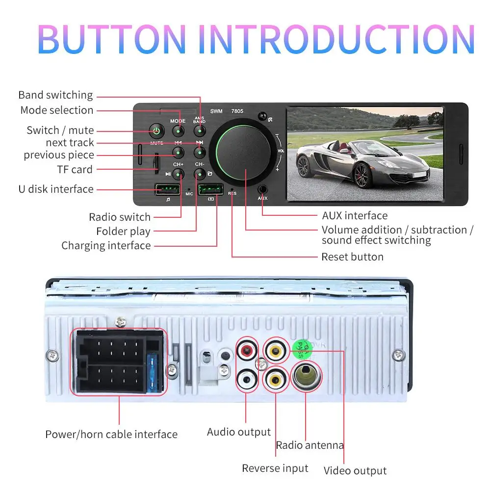 7805 1Din 4.1 Inch TFT touch Car Stereo MP5 Player FM Radio BT4.0 USB AUX RCA with Xiaomi Remote Control