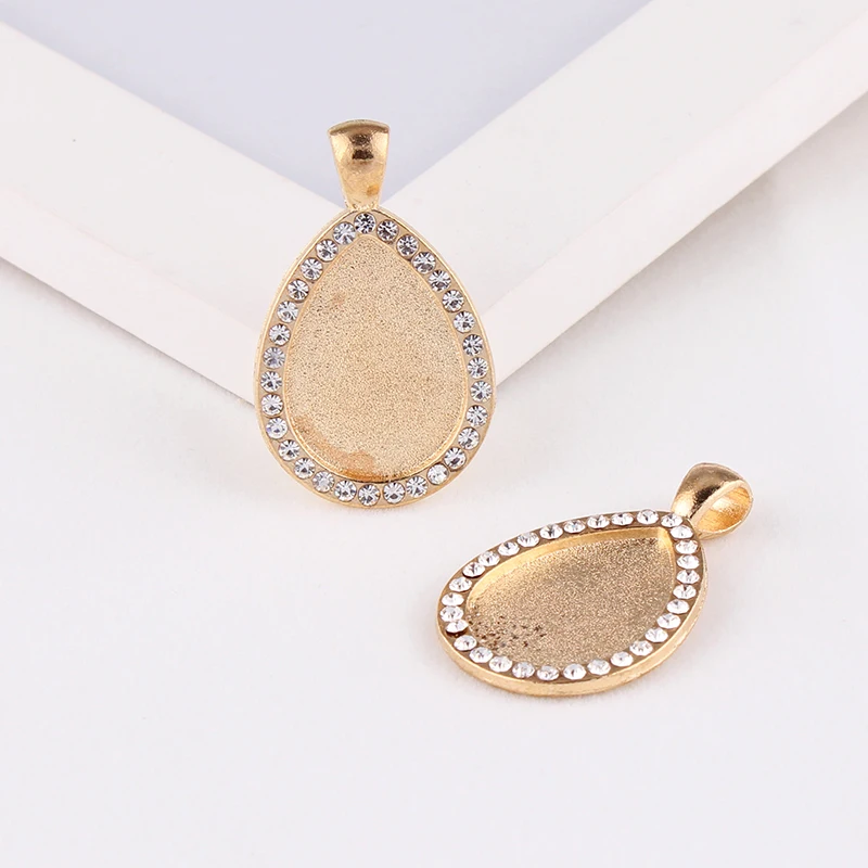 2 шт. различных шампанского золота кулон Кристалл Стразы инкрустированные кабошон драгоценный камень База лоток Безель пустой DIY ювелирных изделий
