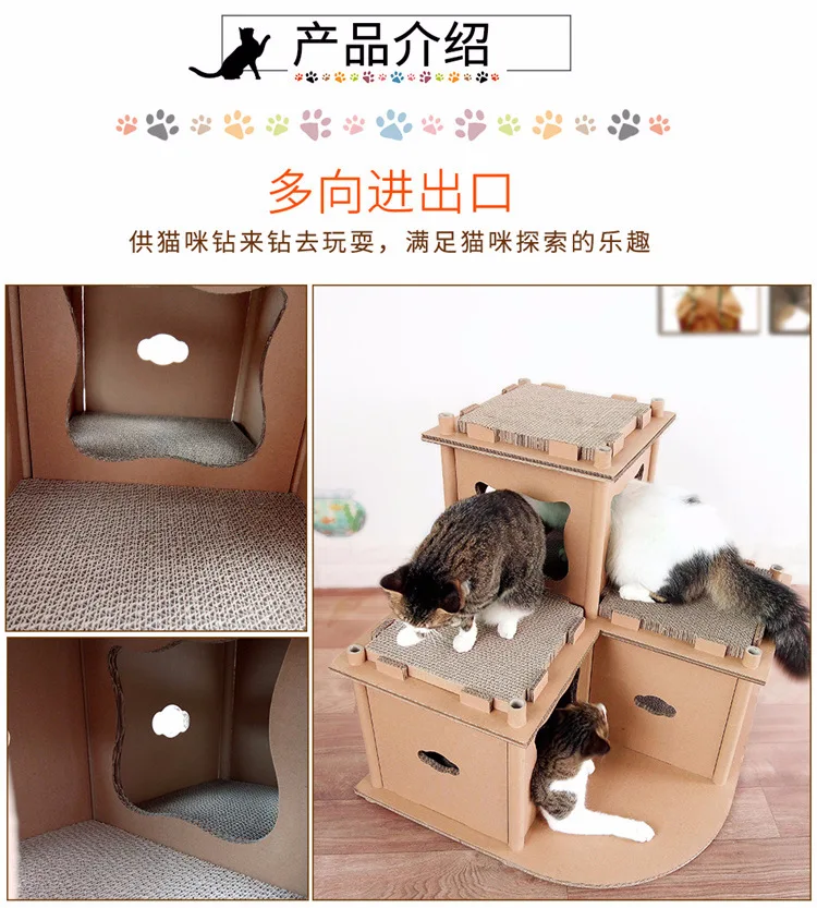 Гофрированный роскошный дом для кошек, башня, Когтевран, игрушка, лазание, рама, мебель, когтеточки для кошек, полка, игровой дом, принадлежности