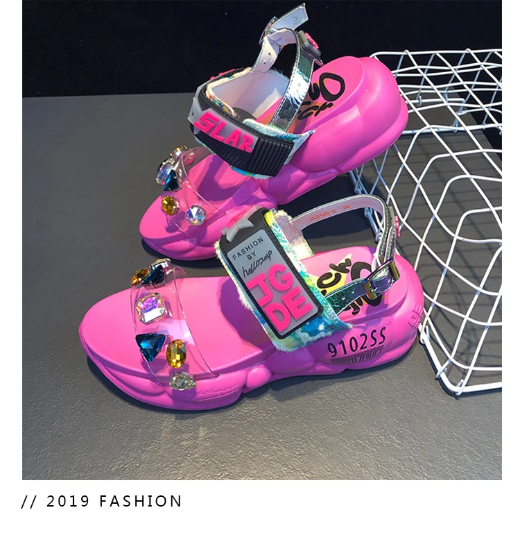 Prova perfetto 2019 модная обувь для папы сандалии с кристаллами на толстой подошве