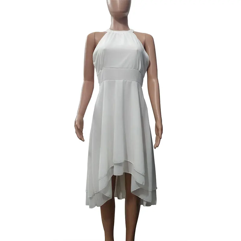 2. вырез на шее и без рукавов, дизайн hi-lo, застежка на молнии сзади с застежкой, плиссированное украшение на талии